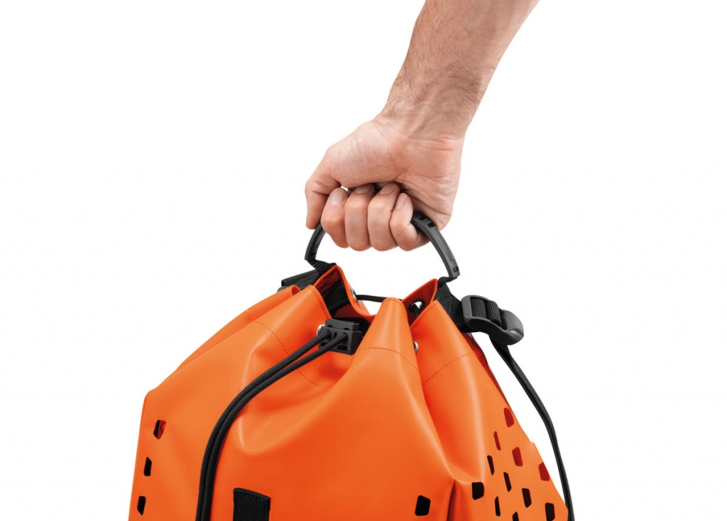 - vorgeformter oberer Tragegriff und Griff an der Frontseite, um das Werfen und die Übergabe des Sacks zu erleichtern,