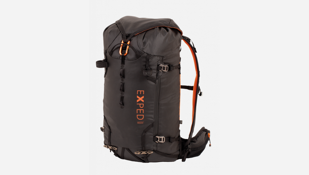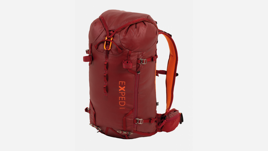 Les Daisy Chains réduites à l’essentiel et positionnées sur le devant du sac à dos fournissent des points d’attache appropriés pour piolet, corde et casque.