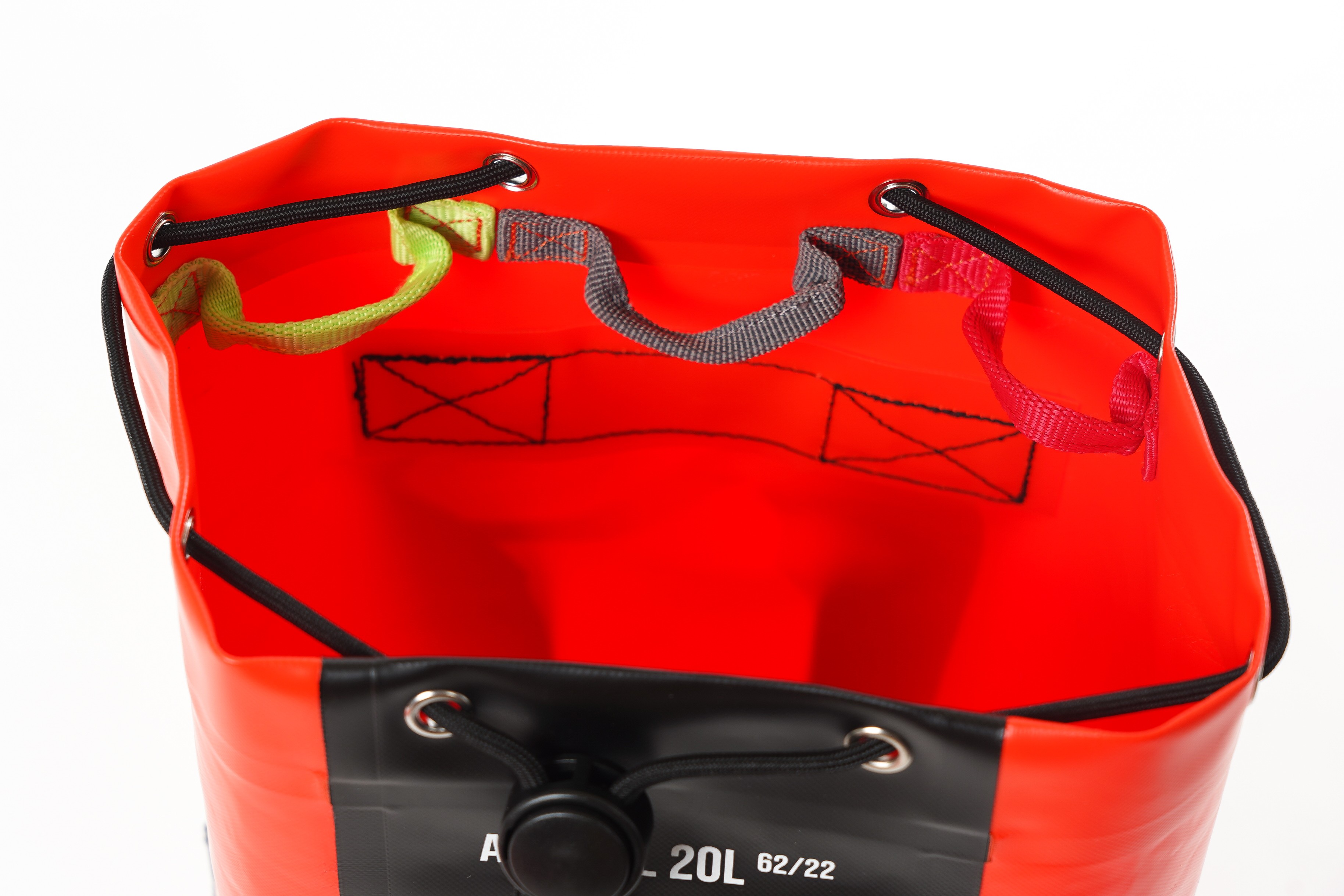 - Equipé de 3 sangles de couleurs intérieures pour les fixations des cordes ou équipements.