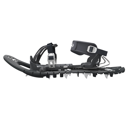 Nie zuvor hat ein Schneeschuh eine solch beeindruckende Haftung geboten. In Verbindung mit den vertikalen Lamellen ermöglichen die zweiseitig wirkenden Krallen aus Edelstahl, die unter dem Fuß angeordnet sind, eine optimale Zugkraft beim Aufstieg, hervorragenden Halt beim Abstieg und optimale seitliche Stabilität beim Queren von Hängen. Da er sich dem Gelände anpasst, gewährleistet der flexible Rahmen hervorragenden Halt, absolute Sicherheit und optimalen Schutz vor Abrutschen im Pulverschnee.